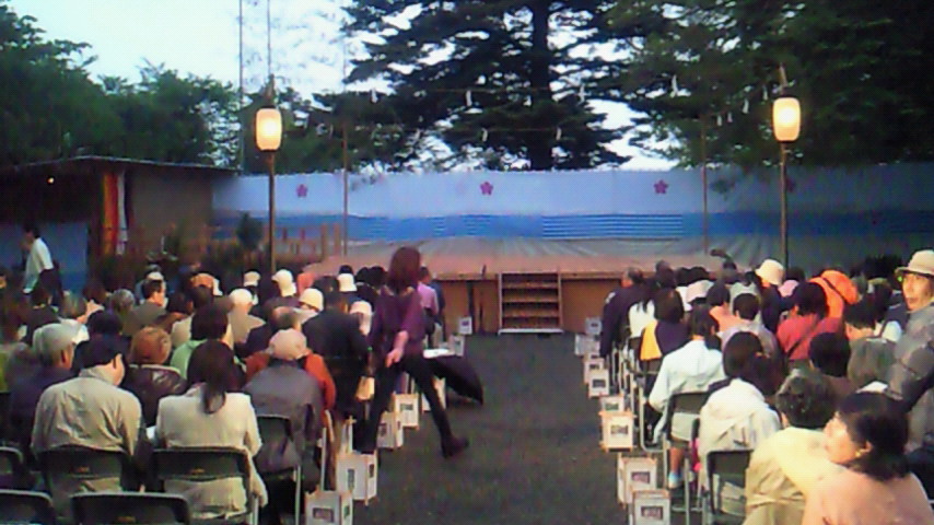 霧島神宮境内、竜馬も見たといわれる展望台を舞台にしつらえて、行われております、狂言。