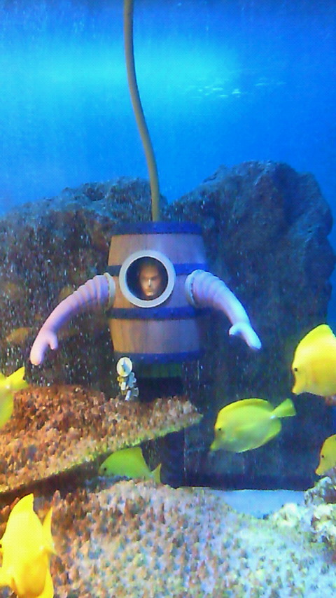 こんな感じで水族館の水槽の中とかに、思い出したようにキャラがいるわけです(笑)