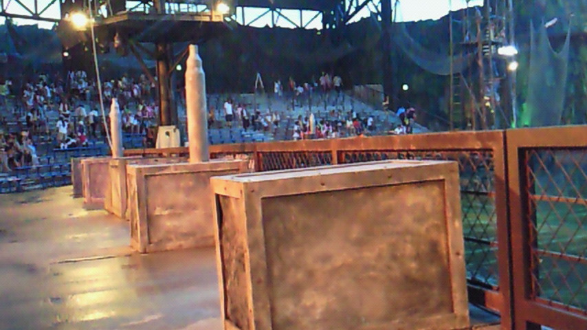 そうして、会場に入って自分のブロックを確認してみたら、L。私は端っこ、と思っていたわけです。会場は扇盆型です。真ん中のブロック、右ブロック、左ブロックに別れており、メイン会場は真ん中ブロックの前、そして海を模したプールの奥とその後ろの立体舞台なわけです。