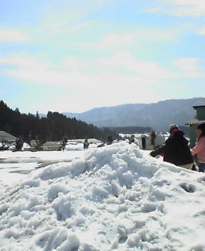 雪のまず降らない地方から、寒い地方にきた観光客らしく、バスガイドの観光地説明放り出して、雪が見えた瞬間