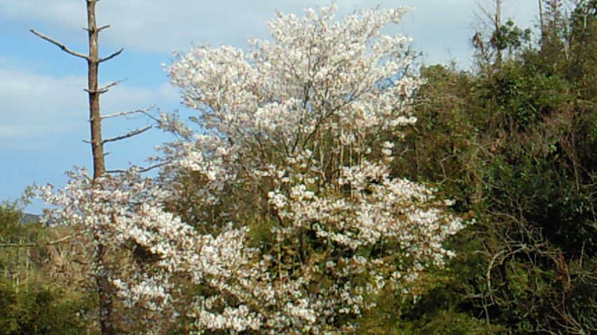 やっと一本だけ、葉桜になってる中、咲いてるの見つけました(笑)