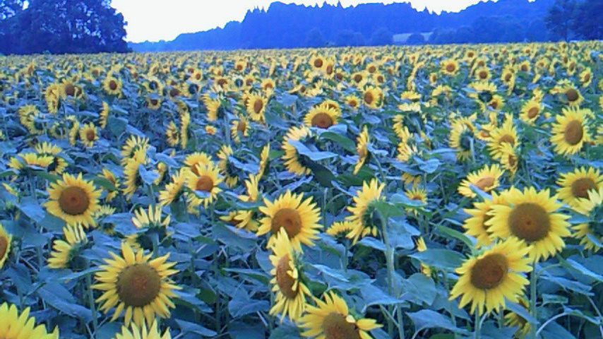 そこは春は桜と菜の花の見事な競演が見られる名所なんですが、今時期は背の低いひまわりが群生してました。